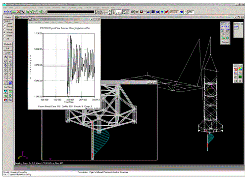 FS-Dynamic is the dynamic response module of FS2000. The analysis is based on the normal mode method. The Frequency Analysis module of FS2000, which is included in the core module of FS2000 is used to evaluate the frequencies and mode shapes of linear structural models. The response module is used to evaluate the resulting deflections, forces and stresses due to various forms of excitation.